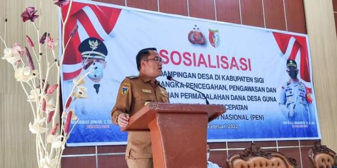 SIGI – – Wakil Bupati Sigi Dr. Samuel Yansen Pongi, SE.,M.Si membuka kegiatan Sosialisasi pendampingan Desa di Kabupaten Sigi dalam rangka pencegahan, pengawasan, dan penanganan permasalahan Dana Desa guna mendukung percepatan pemulihan Ekonomi Nasional yang bertempat di Aula Tadulako UPTD Diklat Dinas Tanaman Pangan dan Holtikultura Provinsi Sulawesi Tengah, Selasa (15/2/2022).