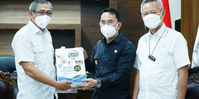 PALU-, Bupati Sigi Mohamad Irwan, S.Sos., M.Si di dampingi Ketua DPRD Kabupaten Sigi Moh. Rizal Intjenae, S.Sos., M.Si menyerahkan laporan keuangan Pemerintah Daerah (LKPD) Kabupaten sigi kepada Kepala Badan Pemeriksa Keuangan RI (BKP-RI) Perwakilan Sulawesi Tengah di Palu, Rabu (16/03/22).