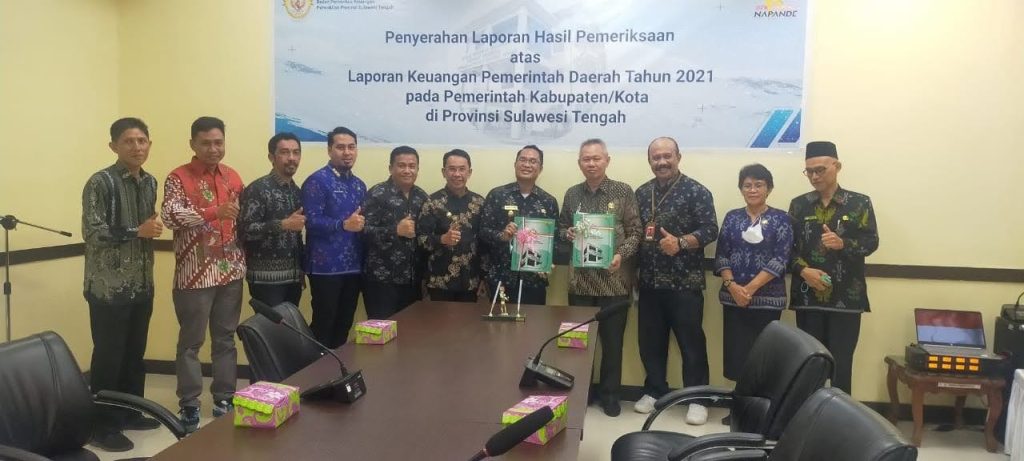 Palu. –, Bupati Sigi Mohamad Irwan di dampingi Wakil Bupati Sigi Samuel Yansen Pongi dan Sekretaris Daerah Kabupaten Sigi Muh. Basir serta Ketua DPRD Kabupaten Sigi Moh. Rizal Intjenae menghadiri acara Penyerahan Opini Laporan Hasil Pemeriksaan atas Laporan Keuangan Pemerintah Daerah Kabupaten Sigi bersama Kepala Badan Pemeriksa Keuangan Republik Indonesia (BPK RI) Perwakilan Sulawesi Tengah Slamet Riyadi bertempat di ruang rapat Kantor BPK RI.Jum’at (13/05/ 2022).