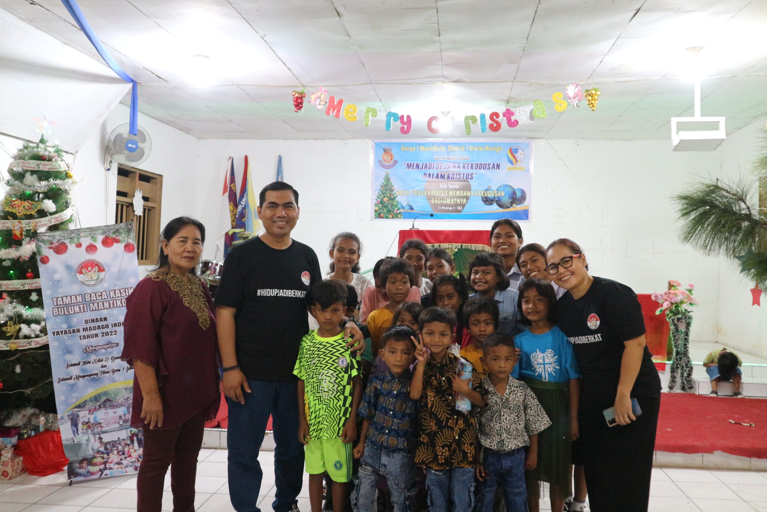 SIGI – Dalam rangka menyambut hari raya Natal, Keluarga besar Yayasan Madago Indonesia mengadakan ibadah perayaan Natal Bersama anak-anak binaan Taman Baca Kasih Bulunti Mantikole bertempat di Gereja Korps Satu Desa Mantikole Kecamatan Dolo Barat, kabupaten sigi, pada Rabu, 14 Desember 2022.