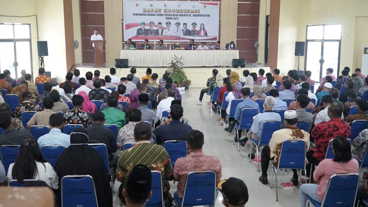 SIGI – Pemerintah Daerah Kabupaten Sigi melalui Dinas Pemberdayaan Masyarakat Desa, melaksanakan rapat koordinasi Pemerintah Daerah, Camat, Kepala Desa, dan BPD se Kabupaten Sigi Tahun 2023. Rakor ini dibuka secara resmi oleh Bupati Sigi Mohamad Irwan S.Sos.,M.Si. yang dihadiri pula oleh Wakil Bupati Sigi Dr. Samuel Yansen Pongi, SE.,M.Si. Unsur Forkopimda Kabupaten Sigi, para Kepala OPD, Camat, Kepala Desa, dan BPD se Kabupaten Sigi.