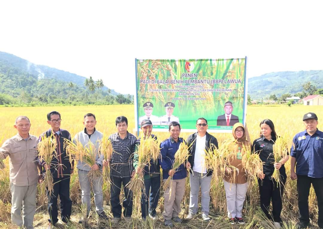 SIGI – Wakil Bupati Sigi Dr Samuel Yansen Pongi hadiri panen padi perdana dan penanaman bambu di Desa Lauwa, Kecamatan Kulawi Selatan, Sabtu, (11/02/2023).